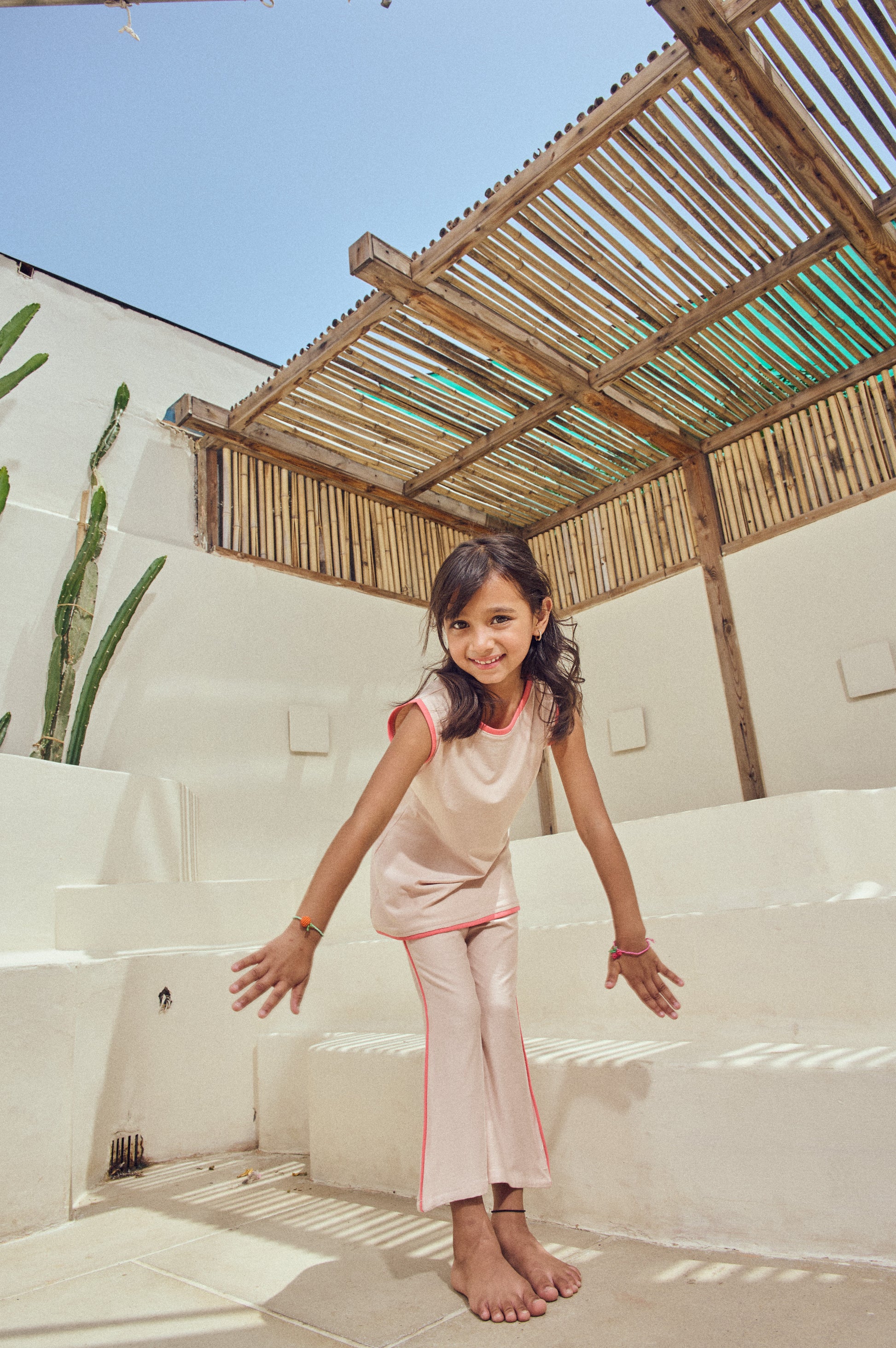 A little flare, a lot of freedom. Pax is crafted in breathable cotton lycra with a soft beige base and coral contrast detailing running